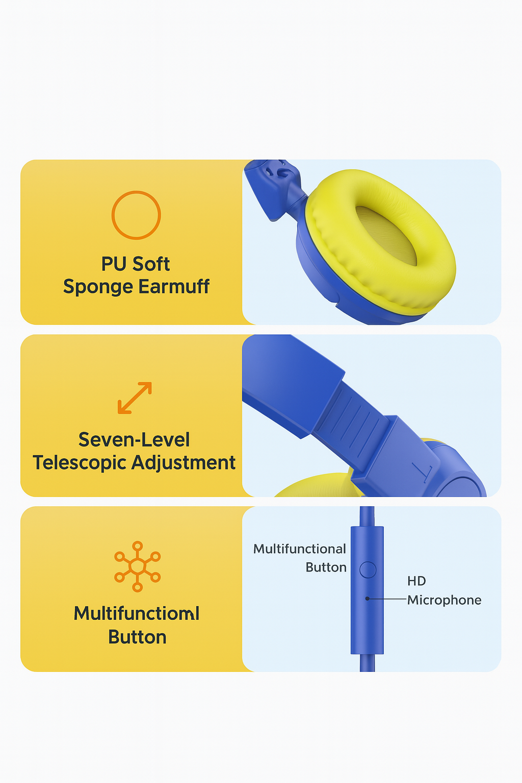 7-Level Adjustable Headband – Fits kids aged 3 to 16 years