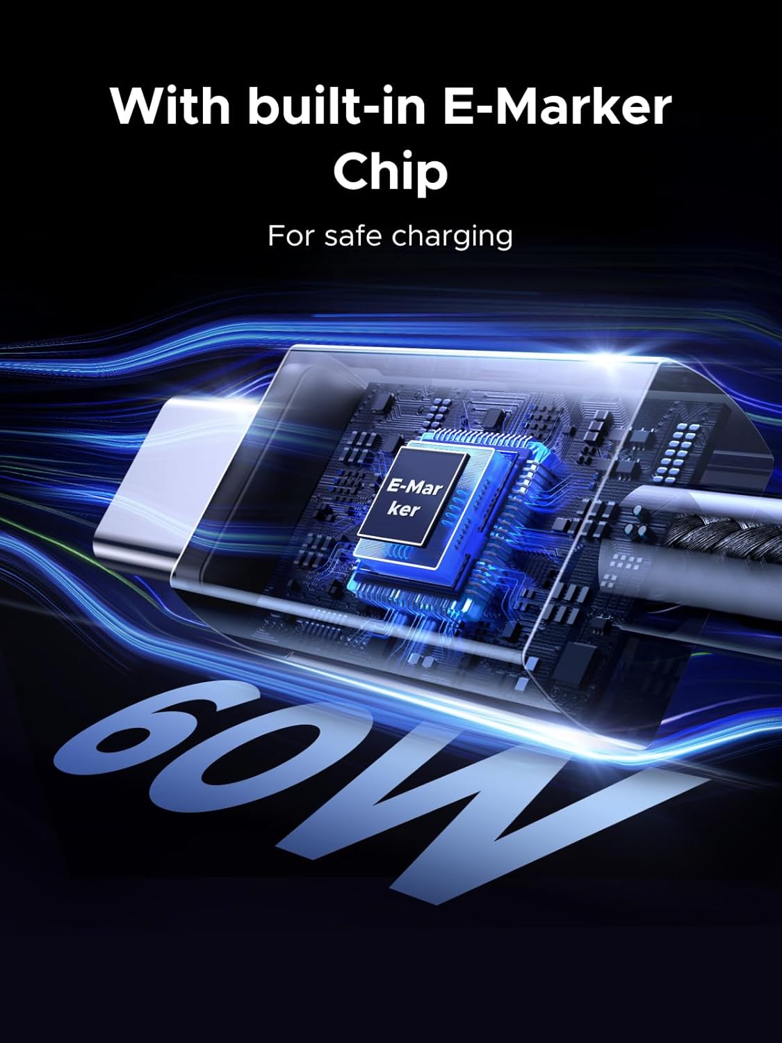 The UGREEN 60W USB-C to USB-C Cable is built for speed, durability, and universal compatibility. With support for Power Delivery up to 60 watts, it charges smartphones, tablets, and laptops quickly and safely. Its reinforced connectors and flexible 1-meter length make it ideal for everyday use at home, work, or on the go.