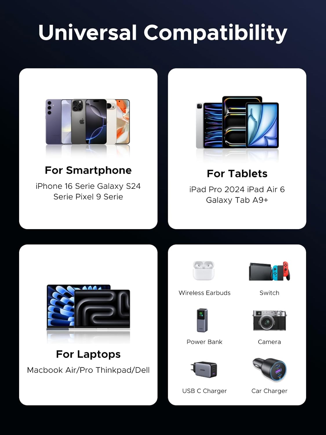 Compatible with MacBook, iPad Pro, Samsung, Pixel, and other USB-C devices
